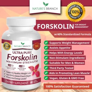 Premium 100% Ultra Pure Forskolin is a high-quality weight loss supplement designed to support your weight loss goals. With its maximum strength formula and 40% standardized forskolin extract, this product stands out from the rest. It boosts weight loss efforts, increases energy levels, curbs hunger cravings, and promotes overall health. This vegan-friendly and non-GMO supplement is made in the USA and undergoes third-party testing for quality and safety.